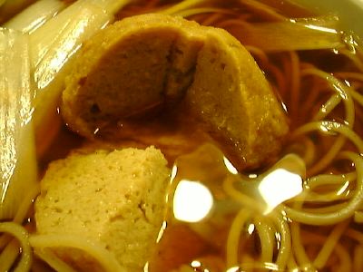 鶏つくねにしたのは、そばにとけないようにするためだろうね。とてもかわっている。つゆは甘目で濃口かな。ネギの甘みはたしかによかった。そば自体は普通だと思う。(な)