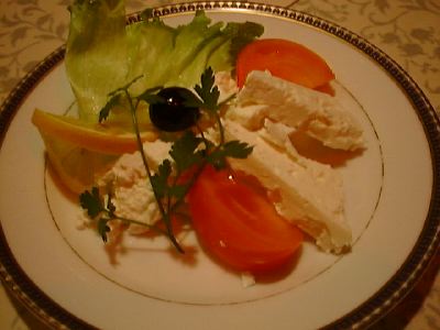 かなり塩辛いチーズです。このチーズを食べた後だと、アイラン(ソルトラッシー)がプレーンラッシーのように感じます。(び)
