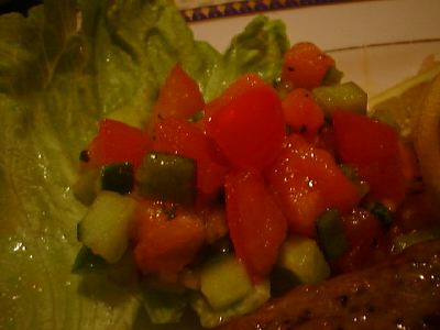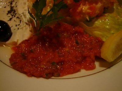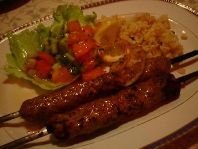 「フェニキア・コース」では、「仔羊のひき肉の串焼き」と「若鶏のガーリック焼き・レバノン風」から選べるのだけど、きょうはもう「若鶏のガーリック焼き・レバノン風」は二人前しかできないということだったので、「仔羊のひき肉の串焼き」にしました。