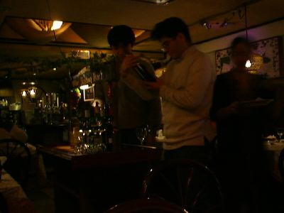 店内が暗いので、ワインバーでワインを選んでいるmessiah&inaの写真、誰が写っているのかほとんどわからないですね。