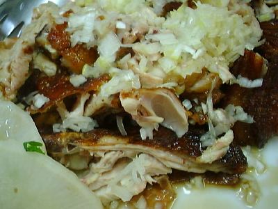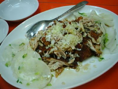 マレーシアの昼時、中国人はたいがいこれを食べている。しかし、これはマレーシアで食べたものより、はるかにうまかった。皮の色がまたとてもよい。そして、骨髄がなんともよい。(な)
