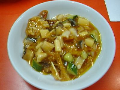 見事な鯉に、甘み"あん"がかけられた、まさに宴会のための料理である。淡水魚は泥臭いといわれるが、そんなのは微塵も感じさせない。カリッとして、食感も素晴らしい。(な)