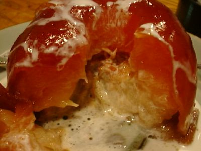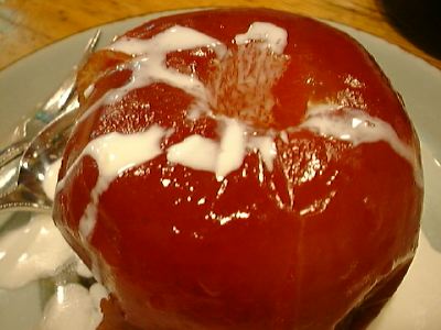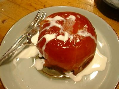 「共栄堂」の名物メニューで、外の看板にも「焼きリンゴ」って書いてるのだけど、確かリンゴの季節だけの限定メニューだったはず。10月〜4月だったかな。シナモンの風味はそれほど強くありません。蜂蜜系の甘さです。ポークカレーかハヤシライスを食べた後に、焼きリンゴを食べるのが好き。(び)