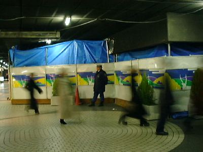 最近、この近辺のいわゆる段ボールハウス群に火事があり、その痕跡が天井などにまだ生々しく残っていますが、段ボールハウス群があった所は今は写真のようにフェンスで囲われています。