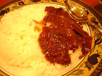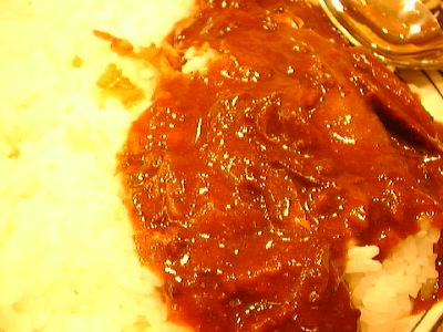 「丸善」のハヤシライスと同系統の味ですが、「丸善」が洗練された上品な大人向けの味だとすれば、「いんでぃら」は決して下品ではないけれども、野性的で若者向けの味かな。