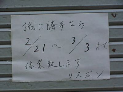 お店のおばさんやマスターがとても気さくな方で、デジタルカメラのこと、インターネットのことなど少しお話したりしました。今度行った時には、ESDのホームページURLを教えてあげようかな。(び)