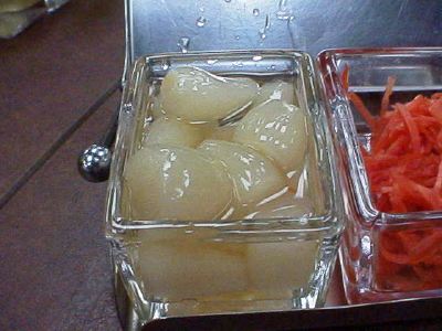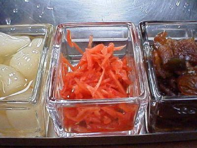 - 薬味に、ラッキョウ、紅生姜、福神漬けがつきます。