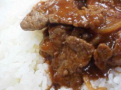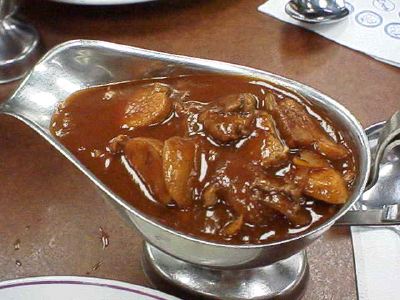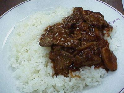 - 具は、牛肉とタマネギとマッシュルームです。非常に具だくさんで、牛肉もとても美味しい。ソースはバターの風味がよく、基本的には甘い系統ですが、甘味の中にも酸味がほどよくきいていいます。甘味と酸味の具合は、「丸善」と「資生堂パーラー」の中間的な感じかな。個人的には、「丸善」のような甘味タイプが好きですが、こういう感じの酸味ならばいいかな。具だくさんで豪快なところ、庶民的な雰囲気もなかなか気に入りました。ハヤシライスには、甘味だけではなく酸味も少しは欲しいという人にはおすすめ。(び)