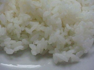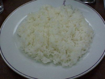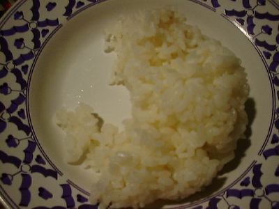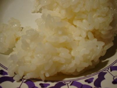 - ごく普通の日本米。写真はちょっと食べてから撮影したもの。