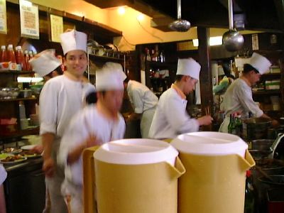 真面目な仕事してる。料理を作ってるのは若手で、その横で班長らしき偉い人が作業を見てる。オムライス作る人と、スパゲティ係とか分かれているところが面白い。なかなか好感が持てる風景だった。(な)