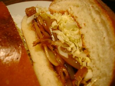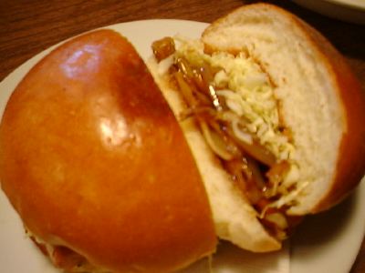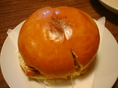 - 一見して、ハンバーガー。特筆すべきは、パリッ、サクッとした歯ごたえのパンの調理。キャベツも甘みがあり、ソーセージもジューシー。その他マカロニ、タマネギがはいっている。かなりうまいホットドッグです。(な)