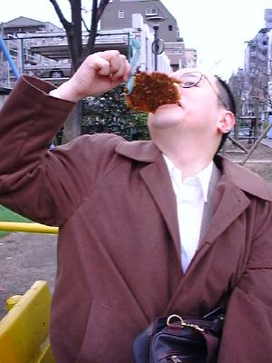 公園内でこんな具合に食べてました。怪しいです(笑)。