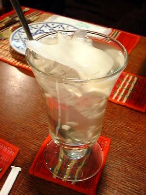 - ココナッツジュース苦手な人も結構いるようだけど(わたしも一番最初に飲んだ時はいやだった)、これに慣れてくると、タイ料理の時ソフトドリンクを飲むならこれが一番と思うようになるから不思議。(び)