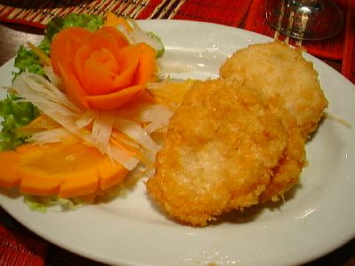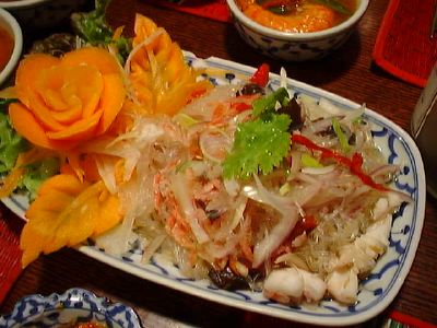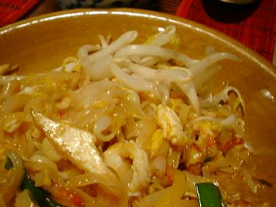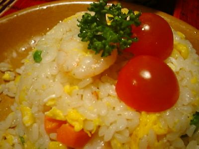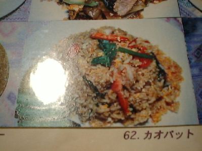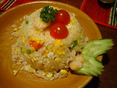 - ミックスベジタブルの入った普通のエビ入り炒飯です。ご飯がちょっとかたかった、というか一部固まってる部分があったな。まずくはないけど、どこがタイ料理?(び)