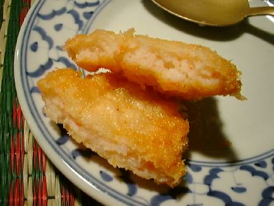 - 中身のエビもプリっとしていて、揚げたてあつあつでとても美味しかった。タレも辛目でとてもよかった。これは非常におすすめ。(び)