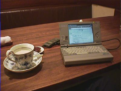 番町茶館は道路よりも1メートルほど下がった所にあるのだけども、入口に一番近い席ではPHSが使えるので、Libretto70&PIAFSでちょっとメールのチェックなどしてみました。