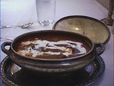 資生堂パーラー系な容器に入って出てくる。ルーを取るスプーンが使いにくいです。肝心の味だけども、全体的にバランスがとても良くとれていて甘みがいい具合にでてる。ソースの味のバランスがとても気に入った。うまいです。(な)
