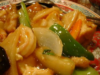 妙に甘ったるくてコテコテした感じのスブタがよくあるけど、ここのは甘さもコテコテ具合もわりと控え目です。他の料理にも共通して言えるのだけど、実際に食べてみると見た目よりも意外に脂っこくないです。(び)