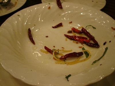 アシューガ辛口にしてってお願いしたら、厨房には「アシューガ唐辛子3倍」ってオーダーされてました(笑)。アシューガ食べ終わった皿にこれだけ唐辛子が残ってるっていうのは普通はないことで、本当に唐辛子3倍になっていたようです。アシューガもこれくらいの辛さの方が美味しい。でも、ペペロンチーニの辛口よりはだいぶ控え目な辛さですね。(び)