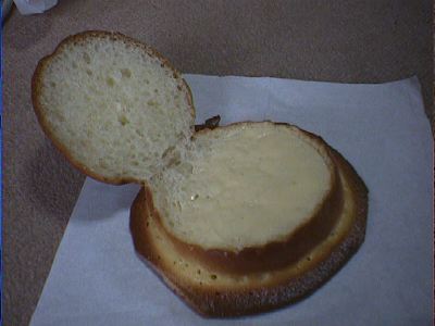- 下の部分のカリカリ感、中に挟んであるバター、かなり美味しいパンでした。(び)