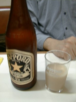 - これはビール瓶に入った濁り酒です(笑)甘酒から酒粕臭さと甘味を抜いて炭酸をちょっと足した感じ。なんか味と言う味はなくて妙な感じ。(く)