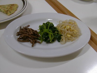 - これはゴマ油系のあえものかな?これも真っ白なお皿と盛りつけから受ける印象のせいかもしれないけど、わりとあっさりした感じなのかな。(び)