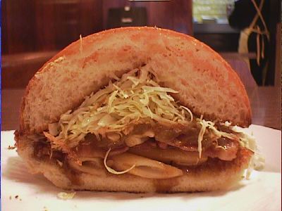 - 焼きカツという通り、ラードで焼いてある。とても香ばしい。衣は厚め。肉は筋をとっているので、やわらかい。肉汁もしたたっていて、甘みがあり美味しい。ソースがついてくるのだけど、これをかけるより、塩をふって食べたほうが断然うまい。(な)