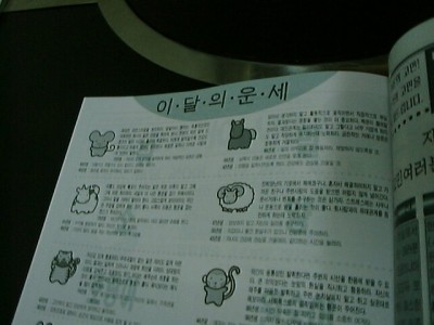 店内のTVでは、ケーブルテレビで韓国の番組が流れていました。お店に置いてあった在日韓国人向け情報誌のうらないページは十二支で分類されていました。帰るまでお客は我々だけでした。
