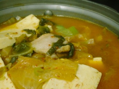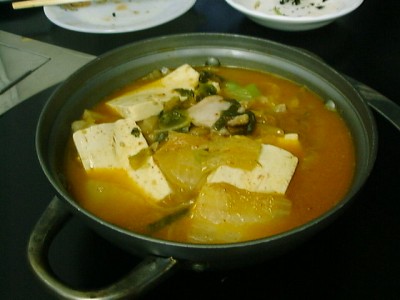 キムチと豆腐が入ったチゲ鍋。先週食べたチゲ鍋と似た感じでしたね。ごはんを進め てくれて、一緒に食べたら美味しかった。こういう家庭的な雰囲気が嬉しいですね。(め)