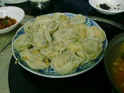 チジミのタレを流用せよと言われました。 調理のしかたは水餃子です。 皮は軟らかくなっているのでお箸で取ろうとしない方がいいです。 メニューに「ギョーザ鍋」というのと「キムチギョーザ」というのが あるので、チーゲと鍋でダブっちゃうんじゃないかという心配をして オーダを確認しにきてくれました。 ギョーザ鍋にすると多分スープに入ったのが来るんだと思います。(い)