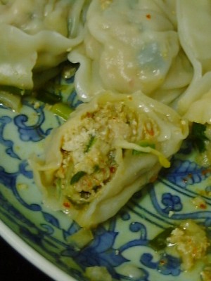 刻んだキムチが入ってる水ギョウザ。思ったよりあっさりしていて、おいしかった。 おすすめです。(め)