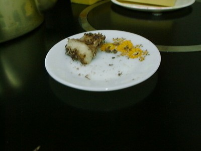 カリカリにした牛肉とレタスの香りと食感がとてもいいです。四川風ビーフジャーキー炒めとでもいった感じかな。この一品はピエールのおごりでした。ピエールありがとう!(び)