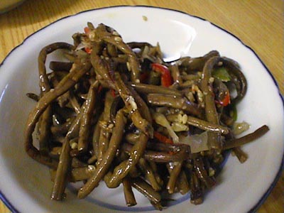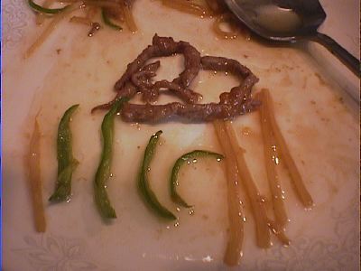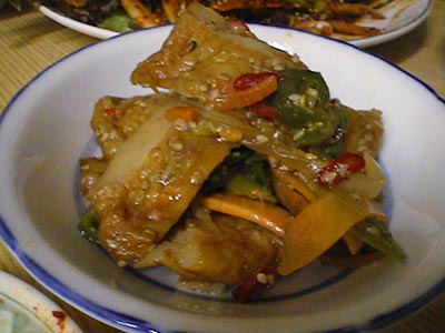 - 唐辛子は大陸のものではなく、普通の乾燥唐辛子であった。辛めにお願いしたが、出て来た物はたいした辛さではなかった。まぁこれは予想できたことである。たいして辛くはなかったけど、唐辛子の香りは良かった。おそらく炒めるときは、唐辛子を多めにいれていたのだろうと思うが、皿に盛るときに除いてるものと思われる。辛めにといったので、少々唐辛子が入っていた。おそらくなにもいわなければ全て除かれたのかもしれない。もっともカラメルで調理していないので、たくさん唐辛子が入ってても、辛すぎて食えないであろうから、抜いてもらっていいと思った。