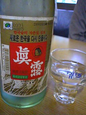 - 真露(韓国の有名な酒造メーカ)の焼酎です。日本でも「JINRO」ブランドで広告もしてるけど、これはラベルがバリバリ韓国語なので、わざわざ韓国製のものを取り寄せてるみたい。日本向けに売ってる真露を飲んだことがないので差はわからないけど、なんか本場物という感じでありがたい気持ちになれます:-)フルーティな香りでなかなかおいしかったです。(め)