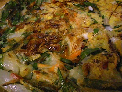 ごめん、あれはにがうりじゃなくてズッキーニだった。韓国ではカボチャといえばズッキーニになるそうで、よく食べるそうです。具だくさんで美味しかった。これは絶対おすすめ。この店にチヂミだけ食べに来てもいいくらい気に入りました。(め)