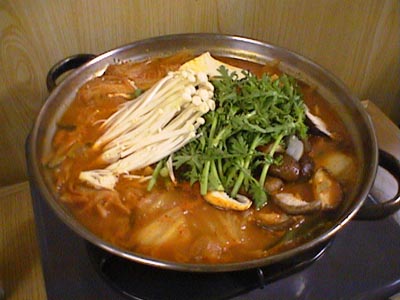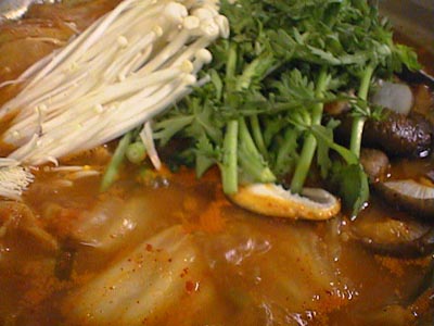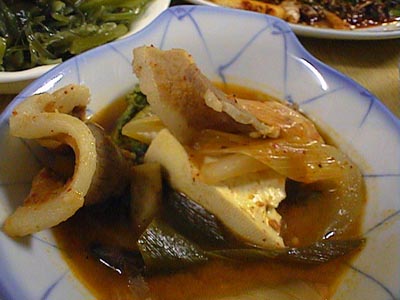 - エノキダケや春菊、豆腐の入ったキムチチゲで、適度に酸味の効いて美味しかった。もっとお腹に余裕があるときに食べたかった。(め)