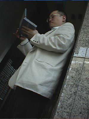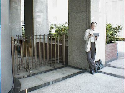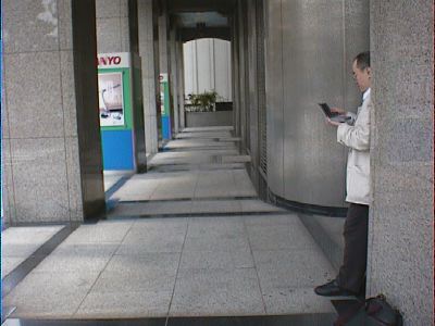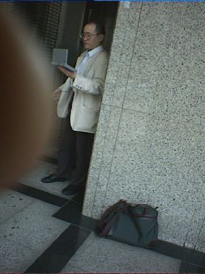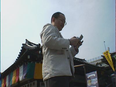 深川不動尊でローアングル撮影しているピエール。