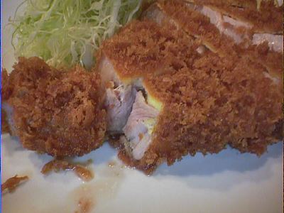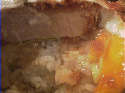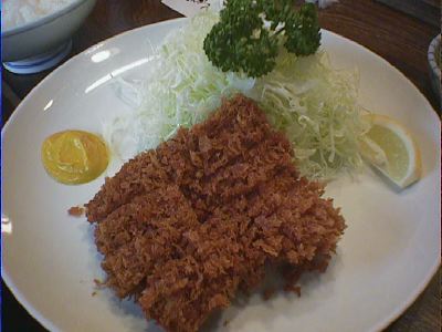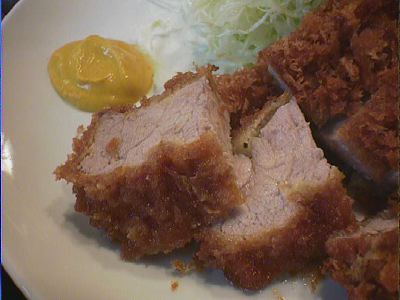 衣はサクっとしていて、きめ荒め。肉汁は脂身がジューシーである。揚げかたは、若干揚げすぎという感じがする。少々赤みがあるぐらいのがいいと思うが、加減が難しい。全体的には重さを感じないので、良いと思う。キャベツはうまみがあり、赤出汁もよい。(な)