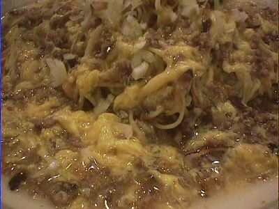 挽き肉と玉子、ネギの味だけがしみじみと味わえるシンプルなやきそば。なんか不思議な魅力があります。しかし、なぜ少子麺と書くのだろう。(め)