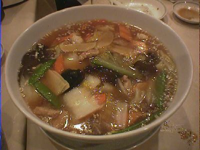 にんにくの芽が入っていて、見た目に映える。ちゃんとカラメルを使用しているので少々甘味があり、そして辛味があるという感じである。唐辛子は国産のものを使用している。やはり大陸のものと違い香りが弱い。全体的には、他の店で出しているものに比べると問題にならないぐらいに良い。(な)