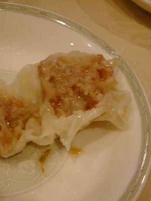 ちゃんと火傷するくらいアツアツに蒸してあるので、それだけでもかなり嬉しい。ほんとはこんなことで喜んでいるようでは、ろくでもない店ばかりということなのかも...。中身は肉とネギの風味がめだつ、なかなかいい感じ。(い)