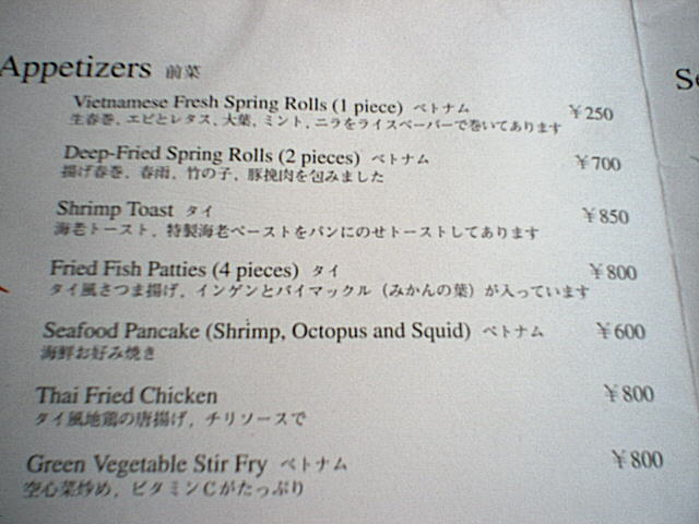 西麻布の交差点にもタイ&ベトナム料理のお店TeTeSがあります。1Fはカフェのようになっていて、ピタパンにガイヤーンや揚春巻、タイ風ソーセージなどの具をはさんだメニューや小さいサイズで500円くらいで食べられるヤム(ヤムウンセン、ヤムヌア、ソムタム。ヤムヌアは牛肉がレアっぽくておいしそう)などがあって結構そそられます。2Fは普通のレストランメニューになっているようです。