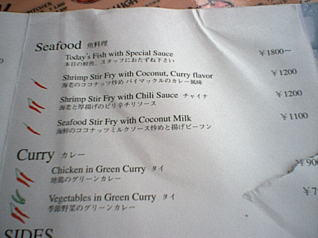 入店したのが午後2時を過ぎていたので、ランチメニューは終わっていました。通常メニューは渋谷のモンスーンカフェとまったく同じメニューですね。気が向いたので撮影してみました。(メニュー写真は640*480のサイズです。他の料理などは400*300)