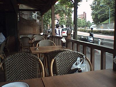 曇天で店内が暗いので、オープンテラスになってる通りに面した席に座りました。車道の向こうに見える青山墓地がオシャレです。