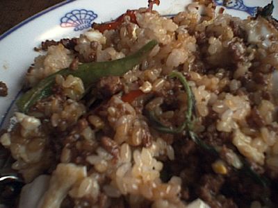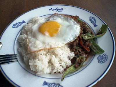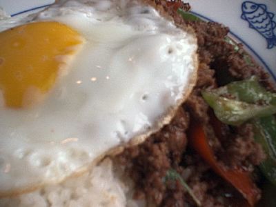 牛肉のガパオ炒め御飯、フライドエッグのせ/1200円