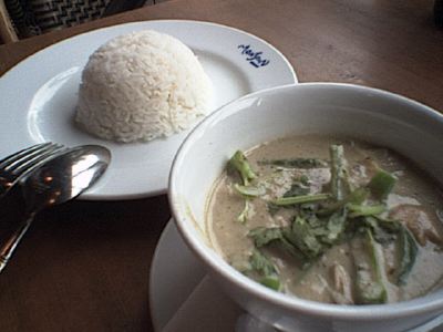グリーンカレーはかなりしっかりとした辛さで甘ったるくなく、この手の店にしては意外なほど硬派な味つけ。僕好みのグリーンカレーです。野菜との相性もいいです。ライスはタイ米と日本米ともち米をちゃんと用意しているところが嬉しい。やはりグリーンカレーはタイ米で食べないとね。エイジアのグリーンカレーもかなり好きだけど、モンスーンカフェのグリーンカレーも同じくらいおすすめです。甘さが控え目でタイ米に独特の香りが少ない分、エイジアよりくせのない感じです。
