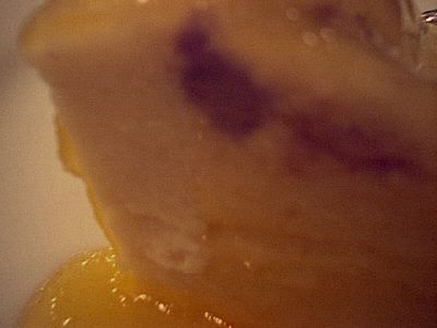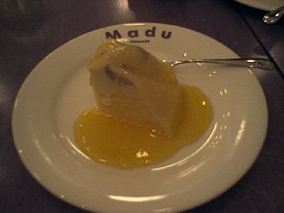 ラム酒に漬けたパンケーキにマンゴシロップがかかってます。見た目にひかれて冒険したつもりで注文したんだけど、期待以上に美味しかった。ケーキ地のしっとりとした感じと、甘酸っぱいマンゴシロップがとてもよかった。