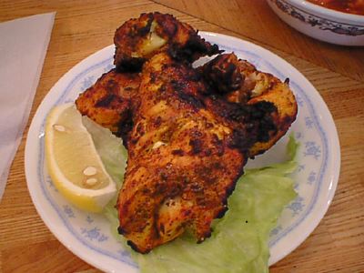 スパイスがたっぷりまぶされた外側についた焦げ目が香ばしく、肉はやわらかく肉汁たっぷりで、火の通り具合も申し分ありません。タンドールチキンも食べてみたいです。(め)