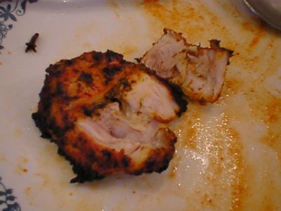 タンドールチキンはスパイス入りのヨーグルトに漬け込んだ鶏肉を焼くものだけど、チキン香味焼はヨーグルトを使わないスパイスに漬けた鶏肉を焼いたもののようです。