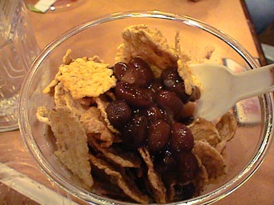 甘いです。別に甘いのは構わないけども、爽やかな甘さじゃなくて、なんだか妙な後味が残ります。もう少し甘さをおさえて、パクチーきかせて、爽やかな感じの方が好み。というと、タイ料理の春雨サラダになっちゃうかもしれないけど。(び)